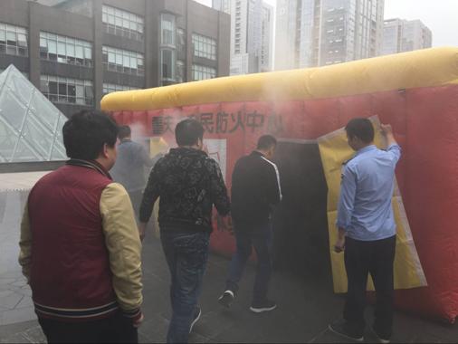 此次消防演練活動分兩個(gè)部分進(jìn)行,首先在重科院會議報(bào)告廳學(xué)習(xí)了消防理論知識,然后在樓下空曠處參加了煙霧逃生體驗(yàn)屋并實(shí)際操作了滅火器滅火。